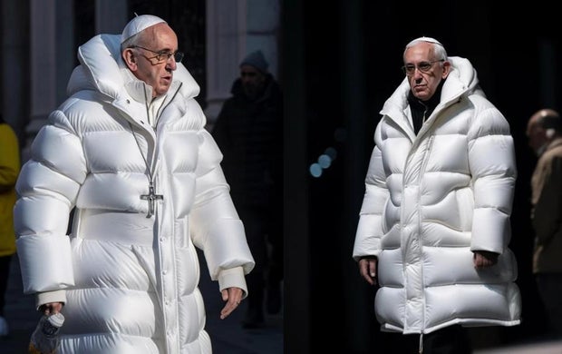 Fotos falsas geradas por software de inteligência artificial parecem mostrar o Papa Francisco saindo do Vaticano com um casaco de grife, o que ele nunca fez. As fotos foram criadas usando o software Midjourney, que pode gerar imagens realistas a partir de descrições textuais. As fotos foram compartilhadas nas redes sociais e rapidamente se tornaram virais. No entanto, o Vaticano confirmou que as fotos são falsas e que o Papa Francisco nunca usou um casaco de grife.